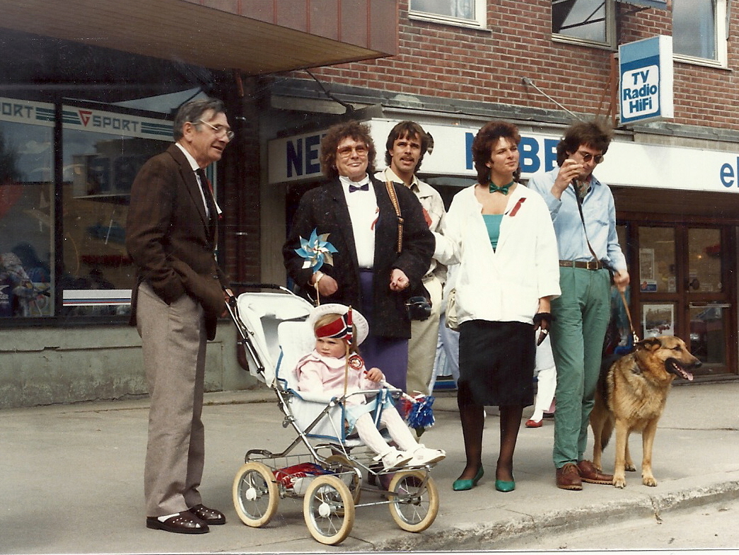 Vi møter noen venner på et bestemt gatehjørne, der vi venter på barnetoget. Hornmusikkallergien min har forresten forsvunnet helt. Vi  forter oss litt hit og dit, slik at vi får se ungene på  forskjellige steder. Etterpå er det 17.maitaler på Stortorget. (Vel, vi hører ikke nødvendigvis på talene, men vi venter i hvert fall til talene er ferdige slik at vi kan samle sammen ungene). Er været ok, blir det is eller noe i Gågata og i Parken. Kanskje en pils, men logistikken krever jo en disponibel sjåfør.